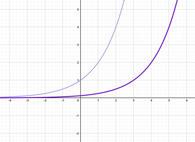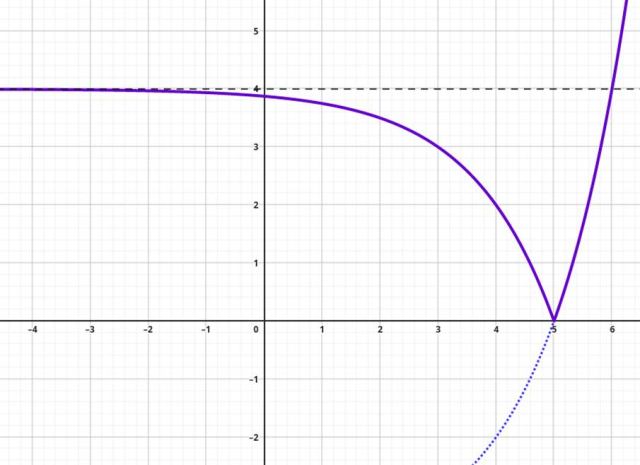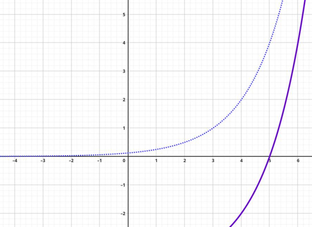 Naszkicuj wykres funkcji wykładniczej, a następnie za pomocą przekształceń wyznacz wykres poszukiwanej funkcji złożonej. Określ przedział, w którym dwa rozwiązania są dodatnie, wyobrażając sobie prostą o wzorze