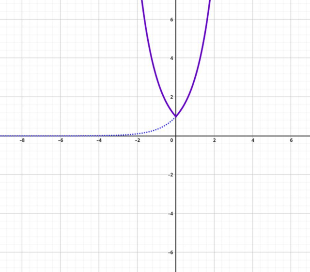 Naszkicuj wykres funkcji wykładniczej, a następnie za pomocą przekształceń wyznacz wykres poszukiwanej funkcji złożonej. Określ przedział, w którym dwa rozwiązania mają różne znaki, wyobrażając sobie prostą o wzorze