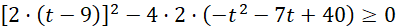 Warunkiem wystarczającym, żeby równanie kwadratowe miało przynajmniej jedno rozwiązanie, jest wyróżnik większy bądź równy zeru: