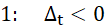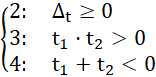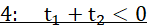Jest również możliwa druga sytuacja: równanie kwadratowe ma jedno lub dwa rozwiązanie ujemne. Wtedy, jako że zmienna 𝑡 przyjmuje wyłącznie wartości większe od zera, nie będzie rozwiązań w 𝑥 będącymi rozwiązaniami w 𝑡. Drugi zestaw warunków przyjmuje więc postać:
