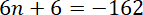 Zapisz trzy kolejne liczby całkowite parzyste w postaciach: 2n, 2n + 2, 2n + 4. Dodaj je do siebie. Przyrównaj otrzymany wynik do –162, oblicz n i następnie oblicz wartość poszczególnych liczb.
