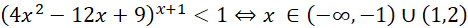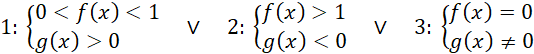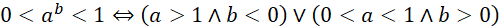 Jest więc to pewna ogólna funkcja wykładnicza. Zauważ, że funkcja wykładnicza jest mniejsza od 1 dla podstawy mniejszej od 1 oraz większej od 0 i wykładnika większego od 0, lub dla podstawy większej od 1 i wykładnika mniejszego od 0. Jeżeli podstawa jest równa 0 to całe wyrażenie jest równe 0 (czyli mniejsze od 1) pod warunkiem, że wykładnik jest różny od 0. Należy więc rozpatrzeć przypadki: