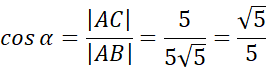 Cosinusem kąta ostrego α nazywamy stosunek długości przyprostokątnej, która przylega do tego kąta do długości przeciwprostokątnej. Oznaczamy jako cosα.