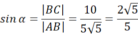 Sinusem kąta ostrego α nazywamy stosunek długości przyprostokątnej, która leży naprzeciwko tego kąta do długości przeciwprostokątnej. Oznaczamy jako sinα.