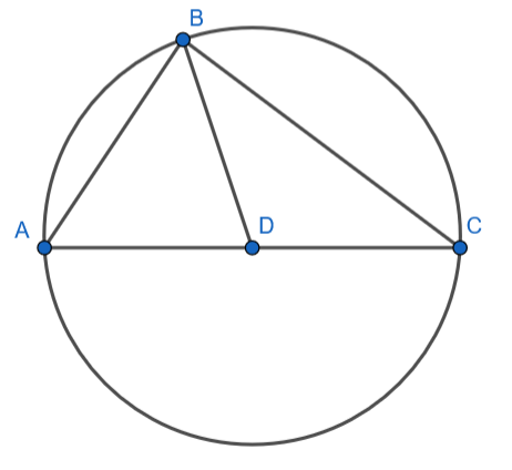 Punkt D jest środkiem okręgu opisanego na trójkącie prostokątnym ABC.