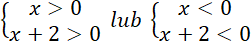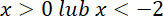 jest większy od zera, jeśli zarówno x jak i x+2 są większe od zera lub zarówno x jak i x+2 są mniejsze od zera.