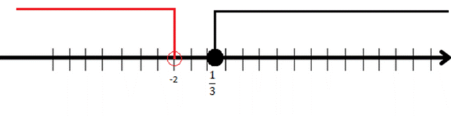 Na początku rozdziel podwójną nierówność na dwie nierówności. Zaznacz zbiory rozwiązań obu nierówności na osi liczbowej. Ich część wspólna będzie rozwiązaniem podwójnej nierówności.