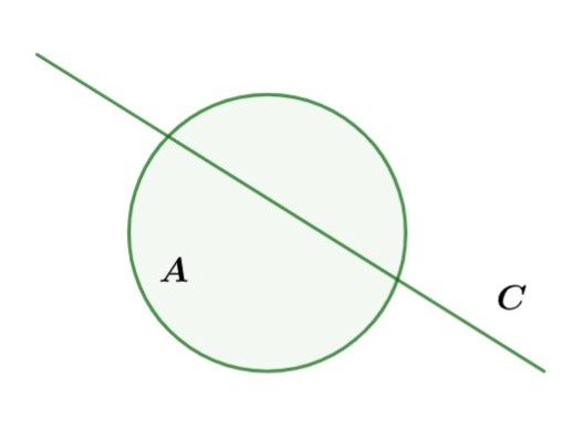 Sporządź schematy obrazujące relacje: , wiedząc, że A oznacza koło, a C – prostą.