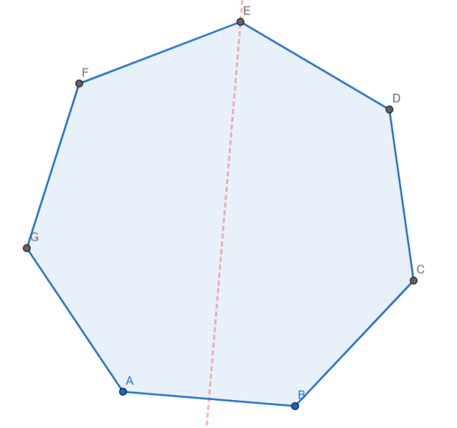 Przykładowa symetralna jednego z boków zawierająca dwusieczną jednego z kątów wewnętrznych siedmiokąta foremnego: