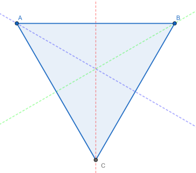 Każda wysokość trójkąta równobocznego jest jego osią symetrii – 3 osie symetrii.