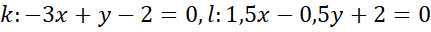 Podane wzory prostych zapisz za pomocą układu równań. Rozwiąż go, aby wyznaczyć wartość