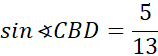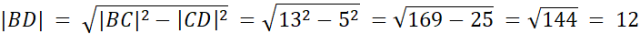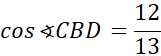 W tym zadaniu oblicz, ile wynoszą wartości funkcji trygonometrycznych kąta CBD, który został utworzony w wyniku poprowadzenia wysokości z wierzchołka B trójkąta ABC. Wiadomo, że długości boków w trójkącie ABC wynoszą |AC| = 10, |AB| = |BC| = 13.