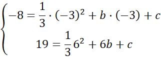 W tym zadaniu oblicz wartości współczynników b i c dla funkcji f(x) = x2 + bx + c wiedząc, że należą do niej punkty K = (-3, -8) oraz M = (6, 19).