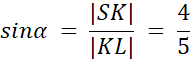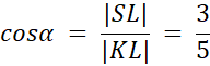 Aby rozwiązać to zadanie zauważ, że jeśli bok KS jest równoległy do AB, a LS do AD, to trójkąt KSL jest prostokątny. Oblicz potrzebne długości boków korzystając z rysunku i twierdzenia Pitagorasa, a następnie wyznacz funkcje trygonometryczne kąta ostrego.