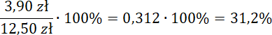 Oblicz różnicę między obecną ceną akcji, a ceną jej zakupu i oblicz jaki to procent początkowej ceny jednej akcji spółki A.