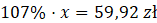 Przez x oznacz cenę towaru bez podatku VAT, którą oblicz wiedząc, że 107% tej ceny wynosi 59,92 zł. Następnie wyznacz cenę z nowym podatkiem VAT.