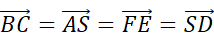 Szukając takich samych wektorów, musisz pamiętać, że odcinki BC, AS, FE, SD mają takie same długości w sześciokącie foremnym. Aby wektory były jednakowe muszą mieć taką samą długość, kierunek i zwrot.