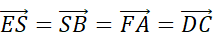 Szukając takich samych wektorów, musisz pamiętać, że odcinki ES, SB, FA, DC mają takie same długości w sześciokącie foremnym. Aby wektory były jednakowe muszą mieć taką samą długość, kierunek i zwrot.