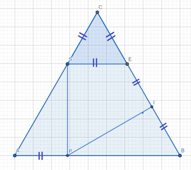 Oblicz pole czworokąta o wierzchołkach PIES w środku trójkąta równobocznego o polu 9.