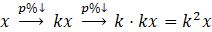 Przez x oznacz cenę towaru. Następnie określ, jak wyglądały kolejne jego ceny, wiedząc, że za każdym razem obniżano cenę o p%, więc za każdym razem zostało k procent z ceny wyjściowej.