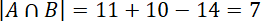 oznacza, że w zbiorze A znajduje się 11 elementów. Z treści zadania wiadomo, że zbiór A ma 11 elementów, zbiór B ma 10 elementów, a suma tych zbiorów ma 14 elementów. Aby obliczyć, ile elementów należy do części wspólnej zbiorów A i B, dodaj do siebie ilość elementów zbioru A, ilość elementów zbioru B i odejmij od tej liczby ilość elementów znajdujących się w sumie zbiorów A i B.
