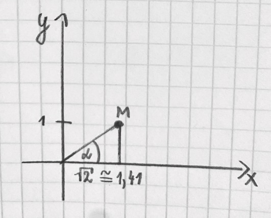 W tym zadaniu wyznacz tangens kąta ostrego α, który znajduje się między prostą przechodzącą przez punkt (0, 0) układu współrzędnych i
