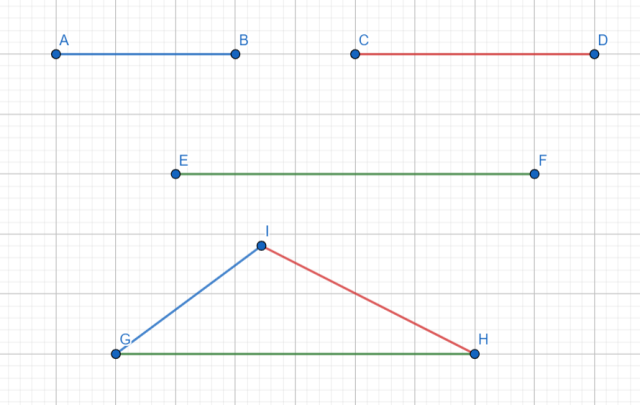 Odcinki muszą spełniać warunek trójkąta, tzn. |AB|+|CD| > |EF|