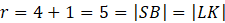 Wiedząc, że każdy wierzchołek prostokąta ABCD leży na okręgu, możesz wywnioskować, że odcinek SK to połowa dłuższego boku. Ponadto SB jest promieniem okręgu, o którym z rysunku możesz, zauważyć, że jest równy 5, zatem z faktu, że przekątne w prostokącie są równe, wynika, że