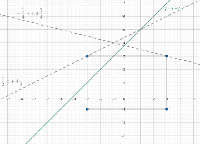 Ustal, dla jakich wartości wykres funkcji ma co najmniej jedne punkt wspólny z prostokątem o wierzchołkach (3,3),(-3,3),(-3,-1),(3,-1)?