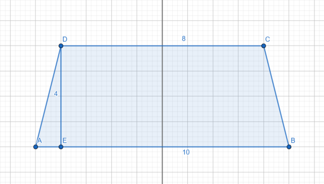 Naszkicuj w sposób konstrukcyjny osie symetrii trapezu równoramiennego o podstawach długości 10 cm, 8 cm i wysokości 4 cm.
