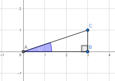 Narysuj dwa odcinki, jeden o długości 1 i drugi o długości 3, prostopadłe do siebie, takie, że koniec jednego jest początkiem drugiego. Połącz końce tych odcinków, by powstał trójkąt. Na niebiesko został zaznaczony szukany kąt.