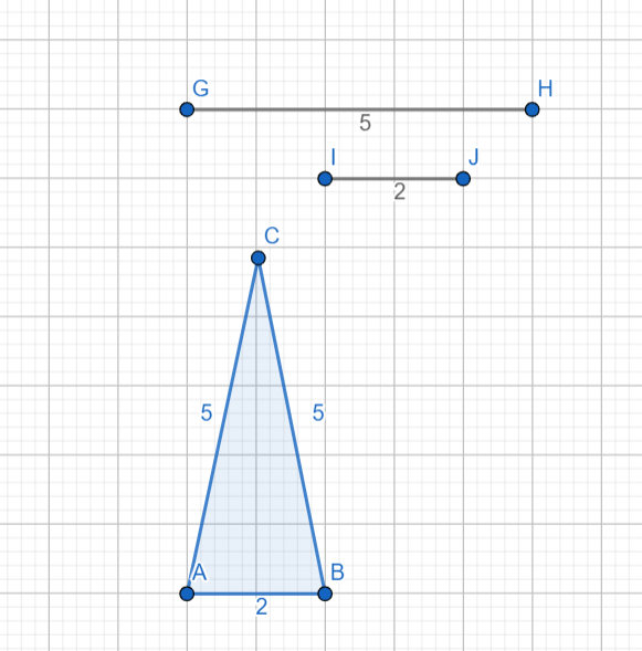 Aby narysować trójkąt o podstawie długości 2 cm i ramionach długości 5 cm: