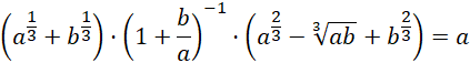 Na początku dowodu zamień podane pierwiastki na potęgi. Następnie zacznij upraszczać podaną równość, mnożąc jej elementy. Zauważ, że możesz pomnożyć przez mianownik liczby po lewej stronie równania, ponieważ z założeń wynika, że a + b nie jest różne od 0. W ten sposób otrzymałeś równanie tożsamościowe, a więc równość z tezy jest zawsze prawdziwa.