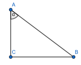 Wyznacz z tablic przybliżoną miarę ( z dokładnością do )., jeśli dane są długości dwóch boków trójkąta prostokątnego ABC :