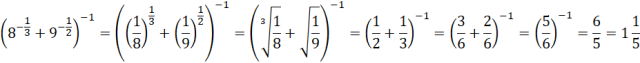 Oblicz wartość podanego wyrażenia. Pamiętaj, że przy podnoszeniu liczby do potęgi ułamkowej należy podnieść ją do potęgi równej liczbie w liczniku oraz spierwiastkować pierwiastkiem o stopniu równym liczbie w mianowniku wykładnika potęgi. Pamiętaj również, że przy podnoszeniu liczby do potęgi ujemnej należy ją odwrócić.