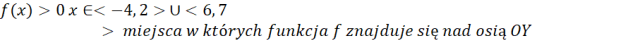 -zbiory rozwiązań nierówności f(x) > 0 i f(x) < 0,