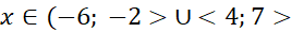 - dziedzina D = (-6;7> i zbiór wartości ZW = (-2;4>