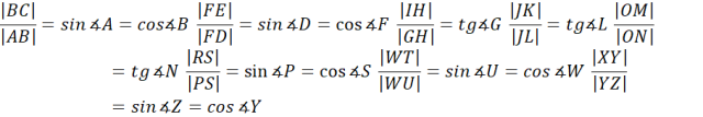 Aby rozwiązać to zadanie musisz skorzystać z definicji sinusa, cosinusa oraz tangensa kąta ostrego w trójkącie prostokątnym i przyjrzeć się oznaczeniom wierzchołków trójkąta.