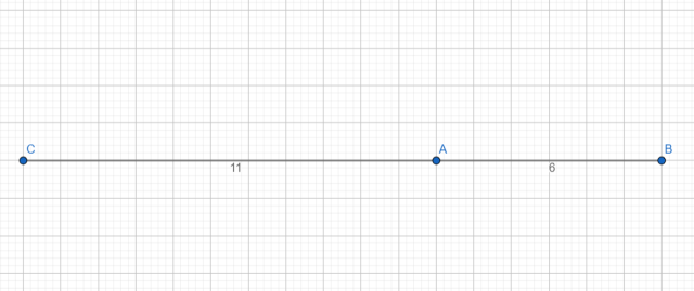 Określ wzajemne położenie punktów A, B i C, jeżeli |AB| = 6, |BC| = 17, |CA| = 11. Wykonaj rysunek.