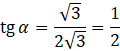 Wyznacz tangens kąta ostrego 𝛼, utworzony przez oś X oraz prostą przechodzącą przez punkt