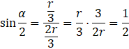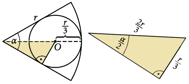 W tym zadaniu, na podstawie trzeciego rysunku, masz wykazać, że 𝛼 = 60°, wiedząc, że wpisane koło ma promień .