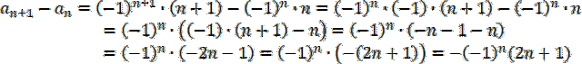 Minus jedynka do potęgi parzystej jest równa , a do potęgi nieparzystej , dlatego ciąg ten jest niemonotoniczny.