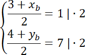 Wyznacz współrzędne punktu B ze wzoru na środek odcinka: