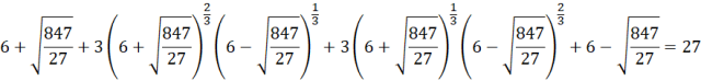 Aby poprowadzić ten dowód, spróbuj pokazać, że dane równanie jest tożsamościowe. Na początku zapisz pierwiastek za pomocą potęgi, aby łatwiej wykonywać obliczenia. Potem podnieś obydwie strony równania do 3 potęgi i wykorzystaj wzór skróconego mnożenia