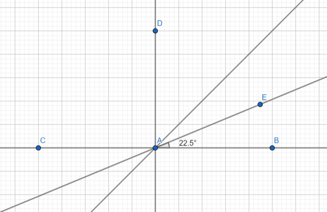 · na otrzymanej dwusiecznej kąta prostego zaznacz punkt E;