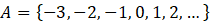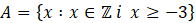 Elementami zbioru A są liczby całkowite nie mniejsze od -3.