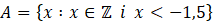 Elementami zbioru A są liczby całkowite mniejsza od -1,5.