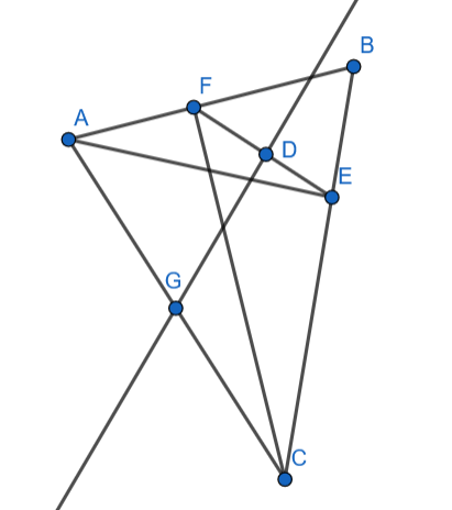 Trójkąty AFC i AEC są prostokątne, więc na czworokącie AFEC można opisać okrąg, którego środek znajduję się w połowie odcinka AC – punkcie G.