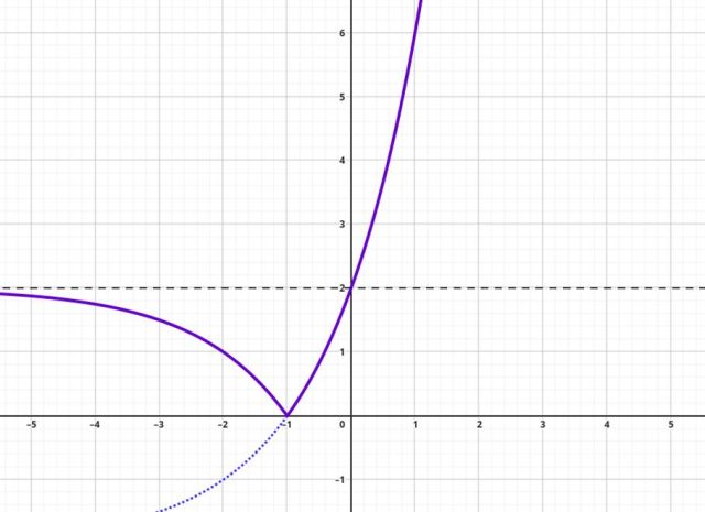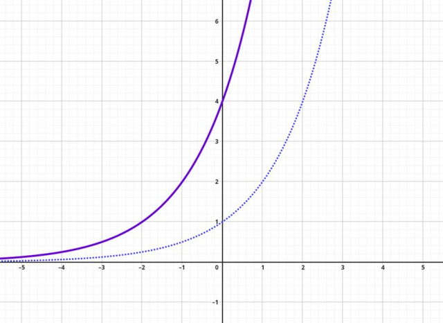 Naszkicuj wykres funkcji wykładniczej, a następnie za pomocą przekształceń wyznacz wykres poszukiwanej funkcji złożonej. Określ przedział, w którym dwa rozwiązania są ujemne, wyobrażając sobie prostą o wzorze