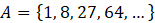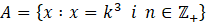 Aby wypisać elementy zbioru A, wstaw w miejsce zmiennej k kolejne dodatnie liczby całkowite – są to sześciany kolejnych liczb naturalnych.